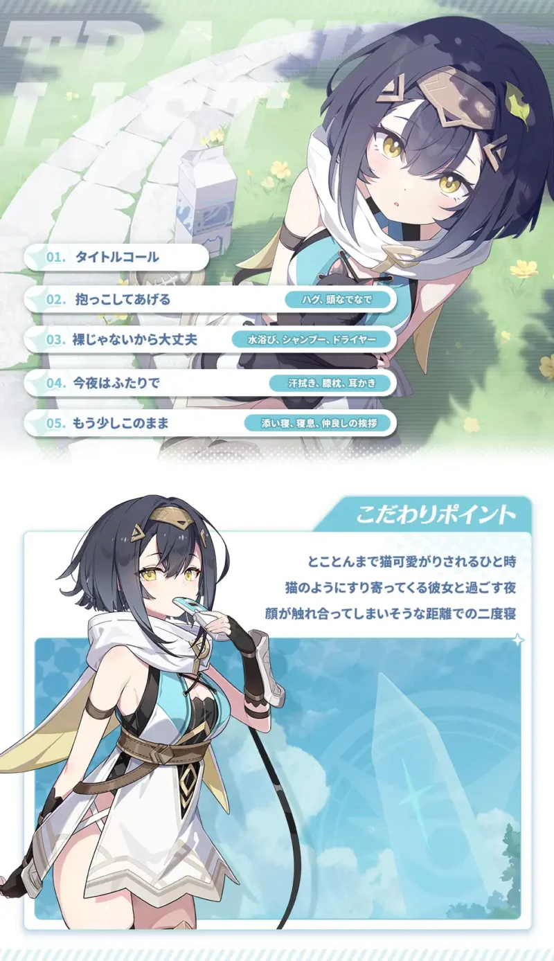 至近距離で語りかけられるような音作りによって、ゲーム本編とは異なるかたちでキャラクターの魅力を体感できる内容となっています。